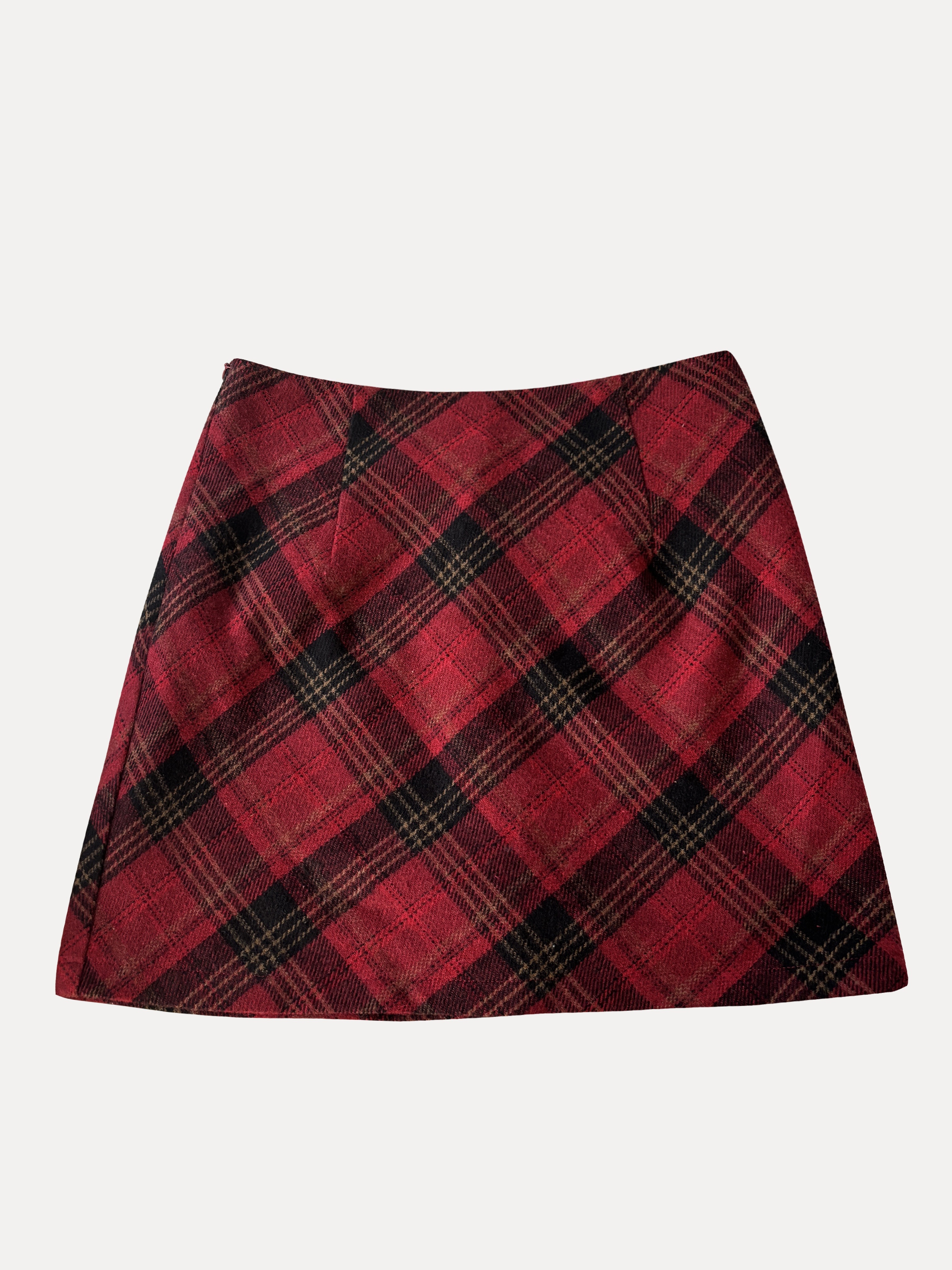 Christmas Vintage High-Waist Plaid A-Line Skirt for Women, 100% Polyester Gingham Pattern, All-Season Elegant Short Skirt