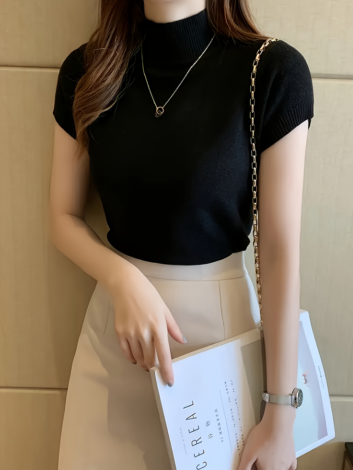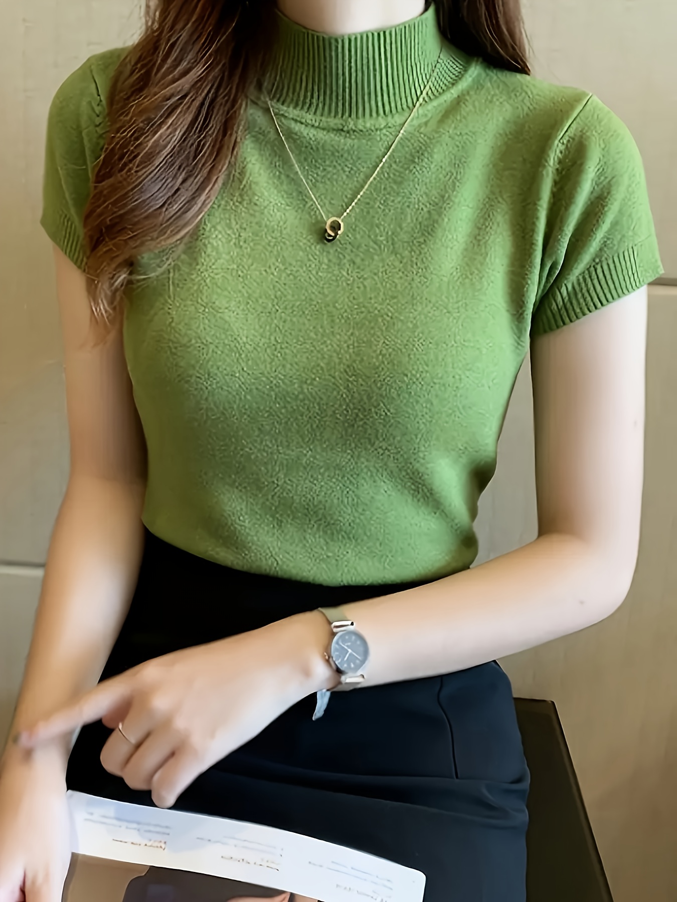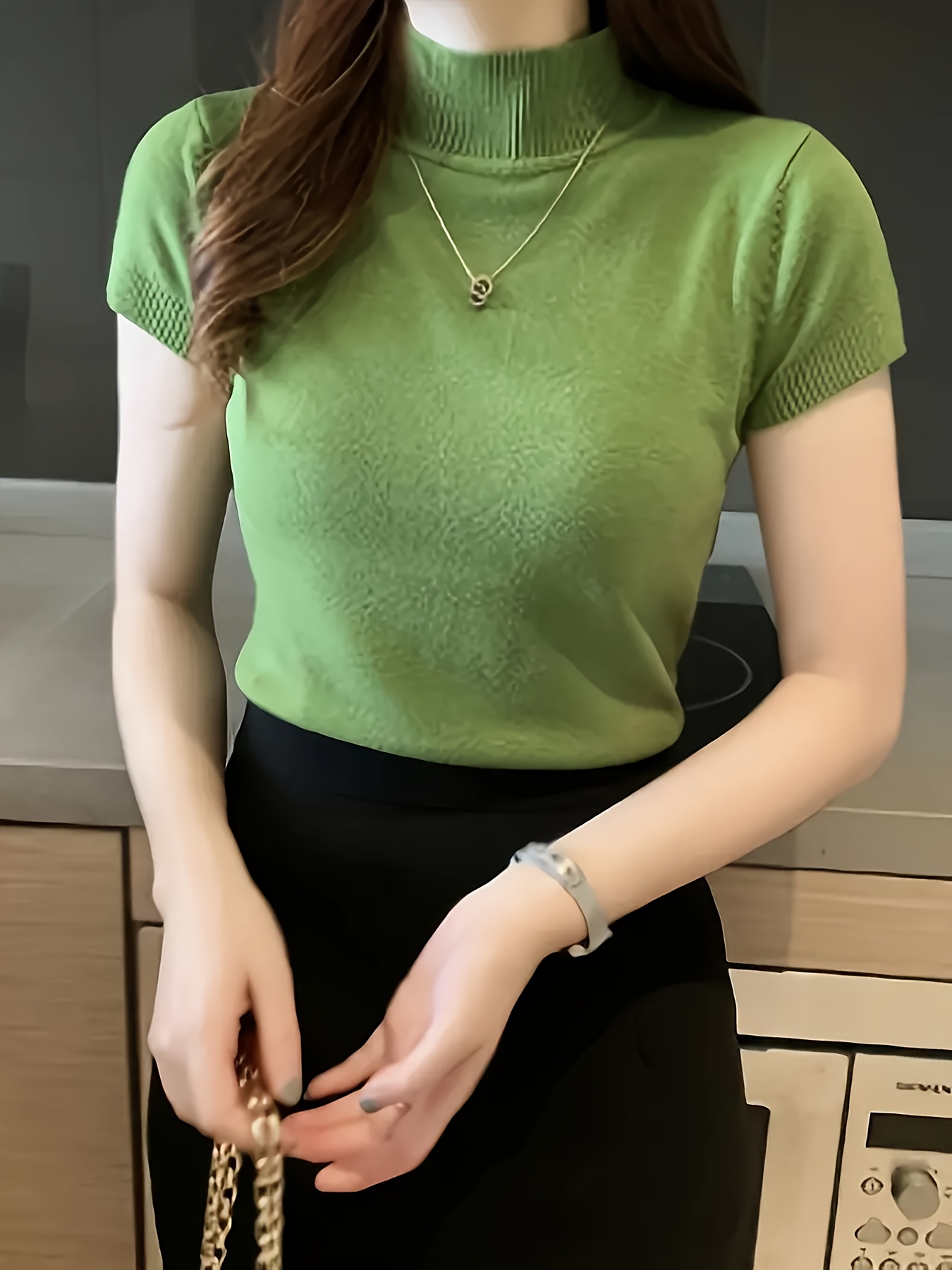 Women's Chic Sweater - Stretchy Office to Party Top, Non-See-Through Slim Fit Shirt for Spring\u002FSummer\u002FFall, Machine Washable Everyday & Formal Outfits, Seasonal Fashion, Highneck Design, Comfortable Wear