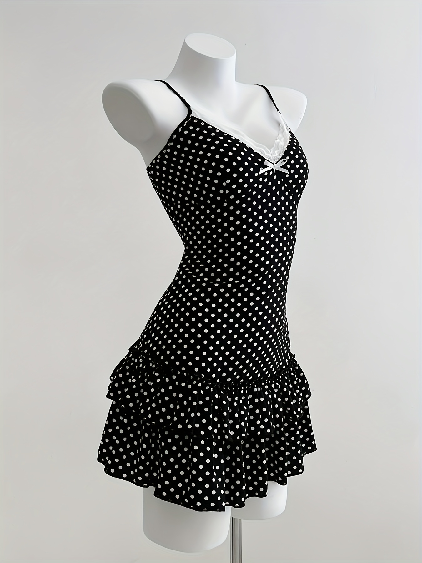Women'S & Polka Dot Sleeveless Mini Dress with Bow Detail & Ruffled Hem - A-Line Casual Summer Dress for Vacation, Beach, Casual Attire - Lightweight Breathable Spring\u002FSummer Outfit