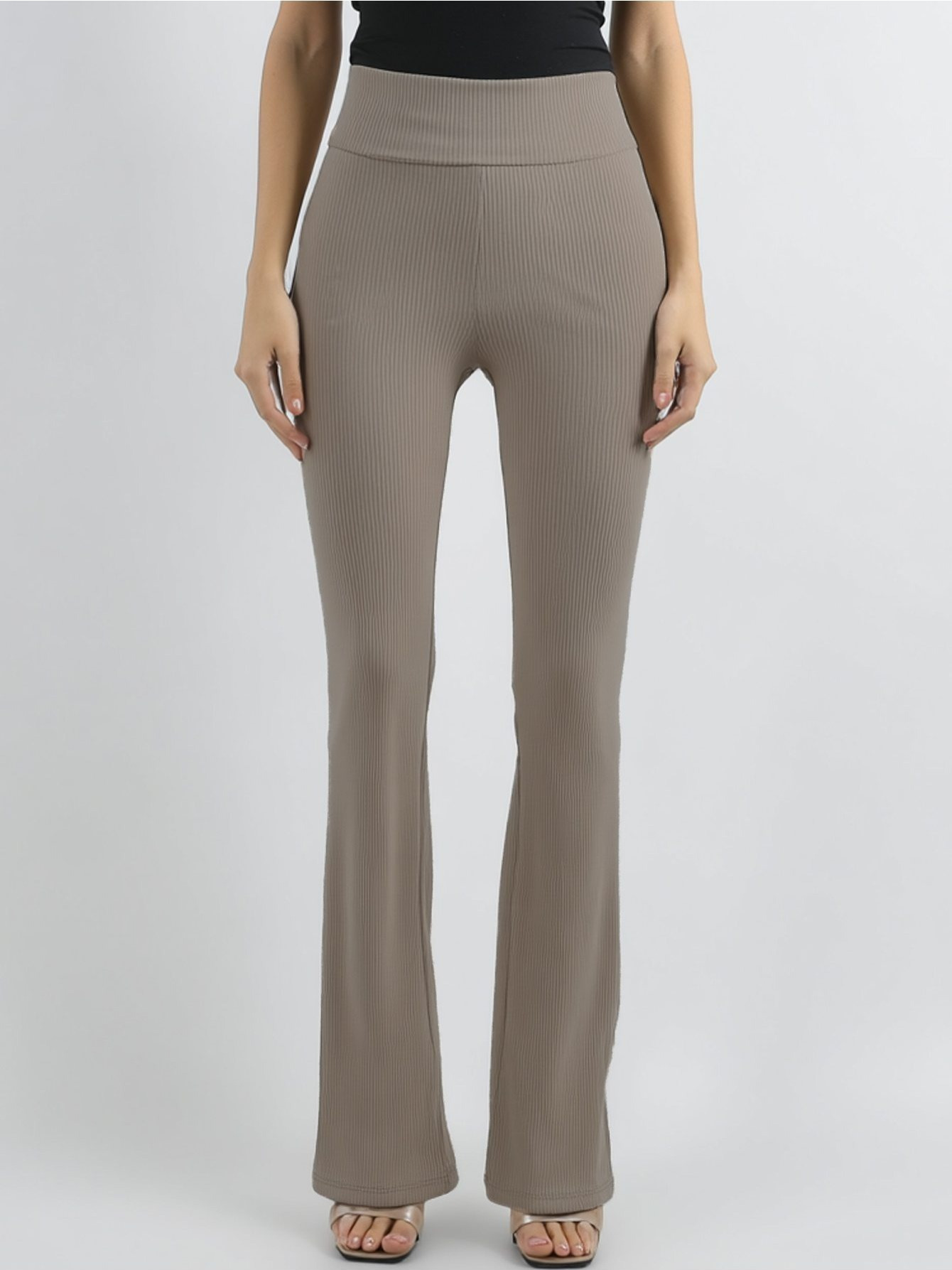 Women's Ribbed Knit High Waist Flare Pants Stretchy Butt-Lifting Slimming Casual Yoga Bell Bottoms