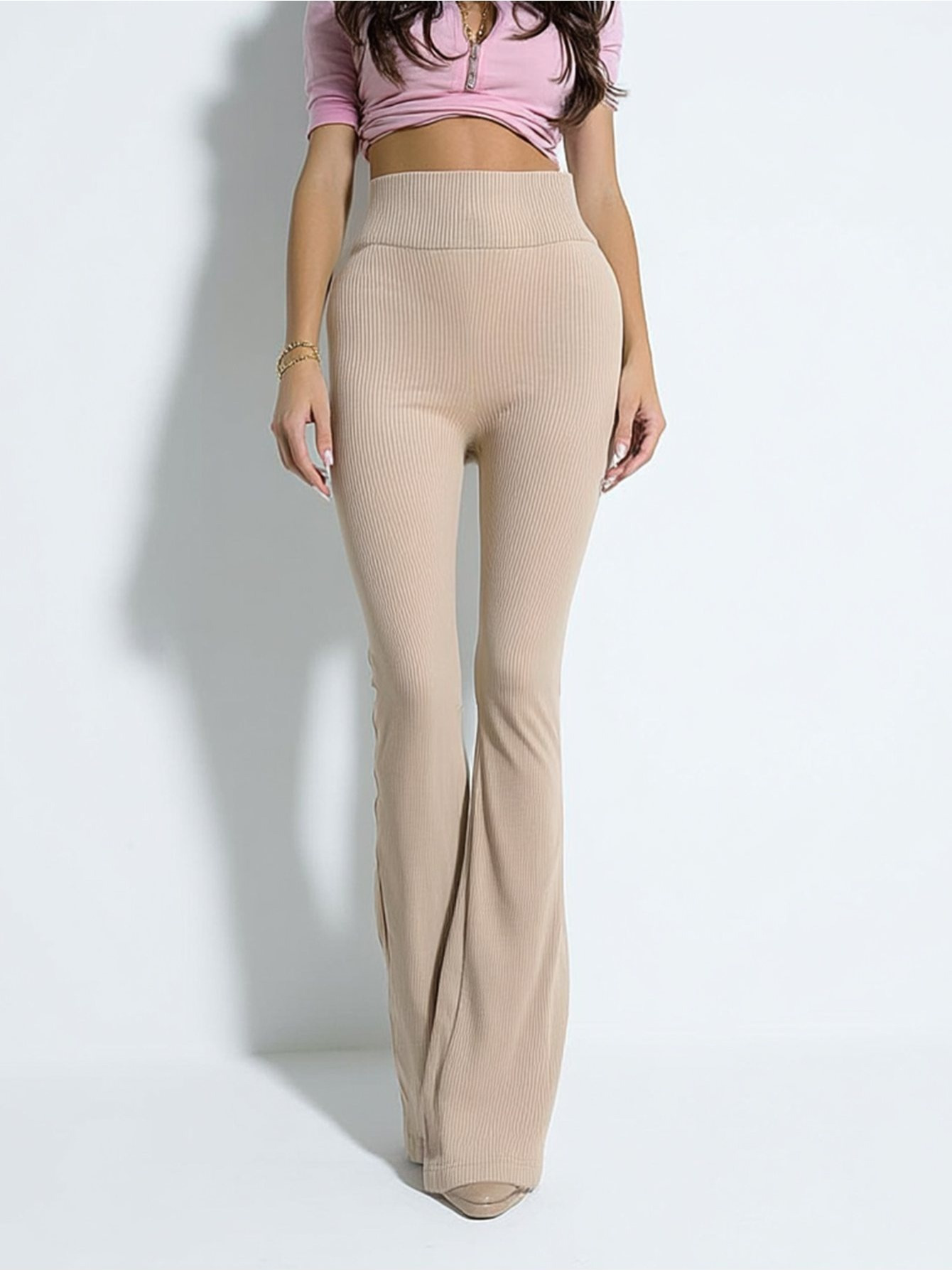 「High-Waist Butt-Lifting」Wide waistband slims the waist. flared legs modify leg shape. visually elongate proportions for an instant long-leg look