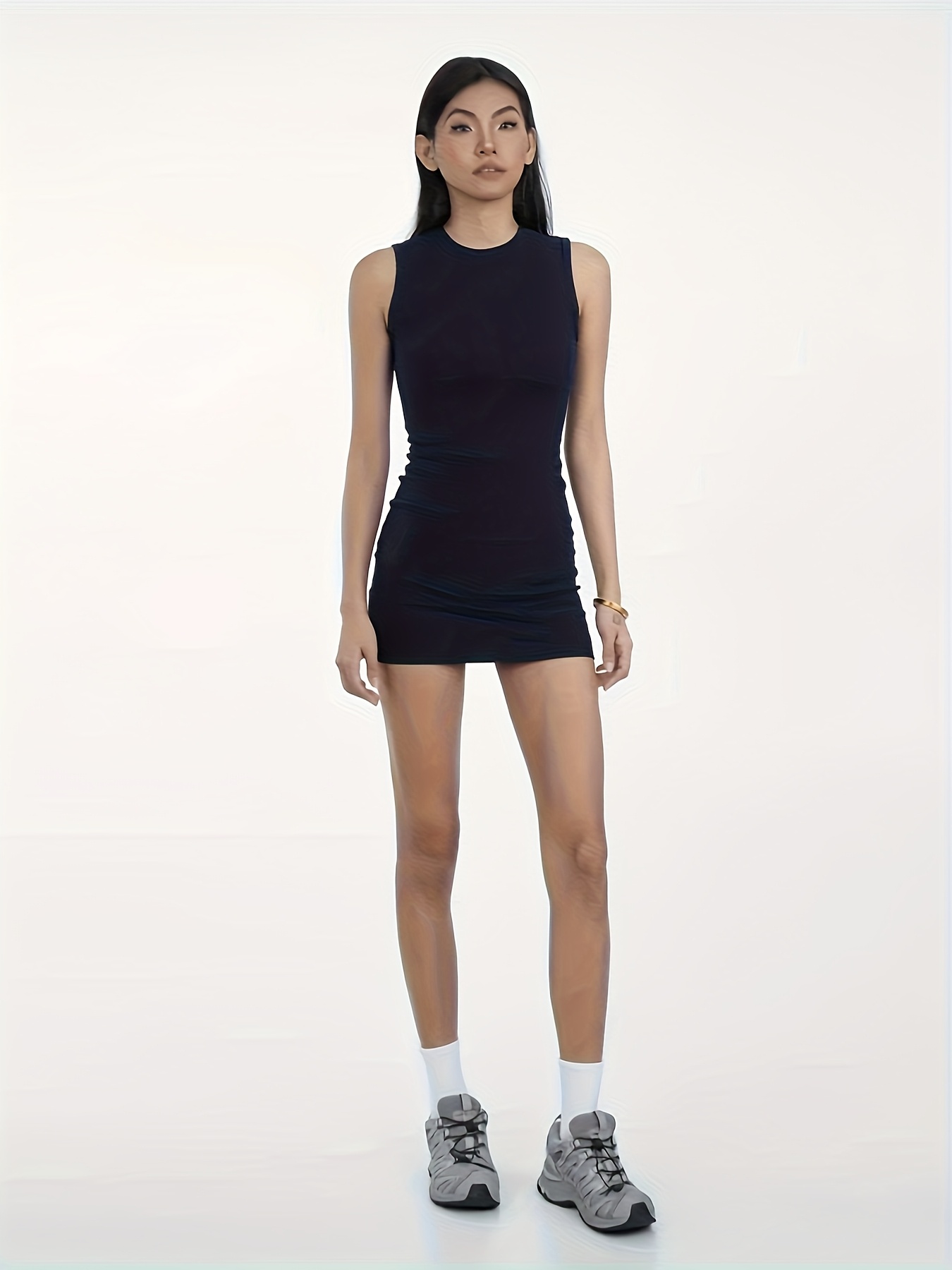 Women's Slim-Fit Round Neck Semi-Sheer Short Sleeve Bodycon Dress - Black Stretchy All-Season Casual to Semi-Formal Outfit, Machine Washable & Versatile Everyday to Party Wear for Women, Modest Outfits for Women, Open Back Dresses for Women