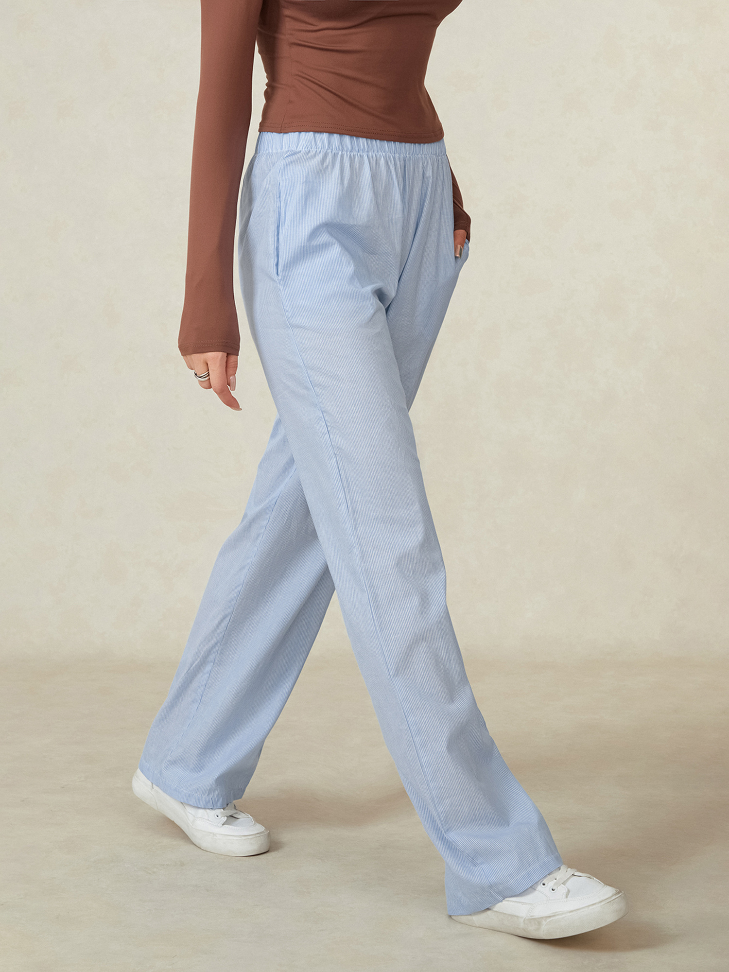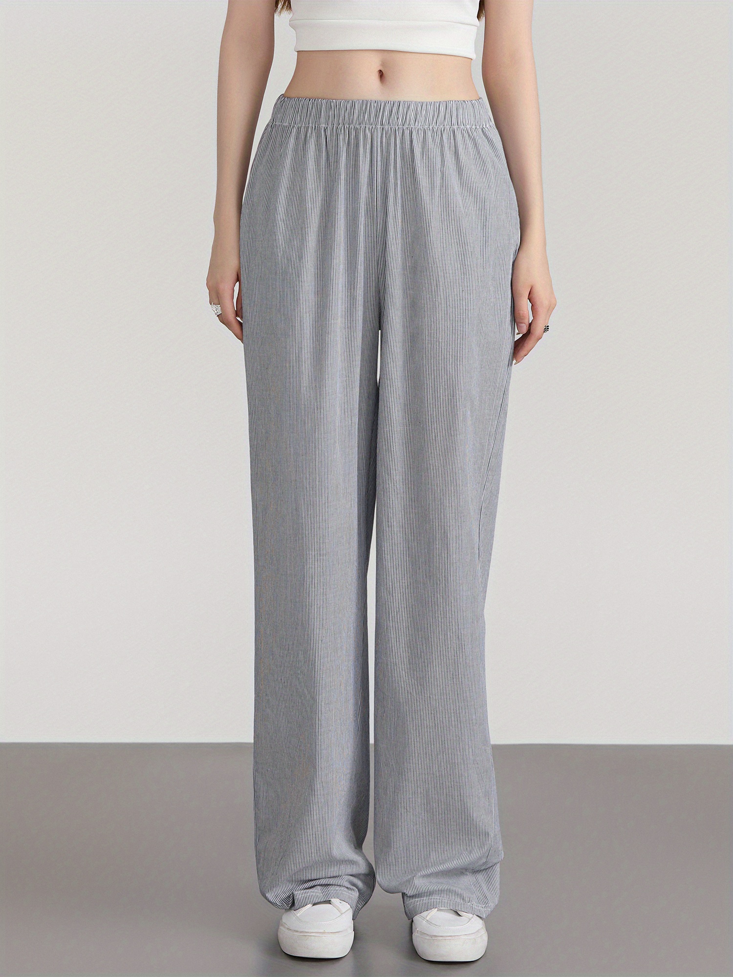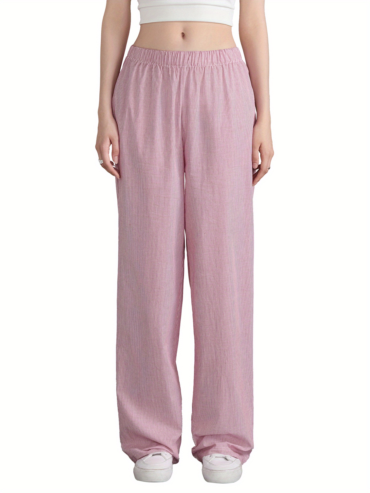 Women'S Wide Leg Pants, Casual Solid Color Straight Leg Trousers with Elastic Waist, Adult Lounge Pajama Bottoms - Woven, All-Season